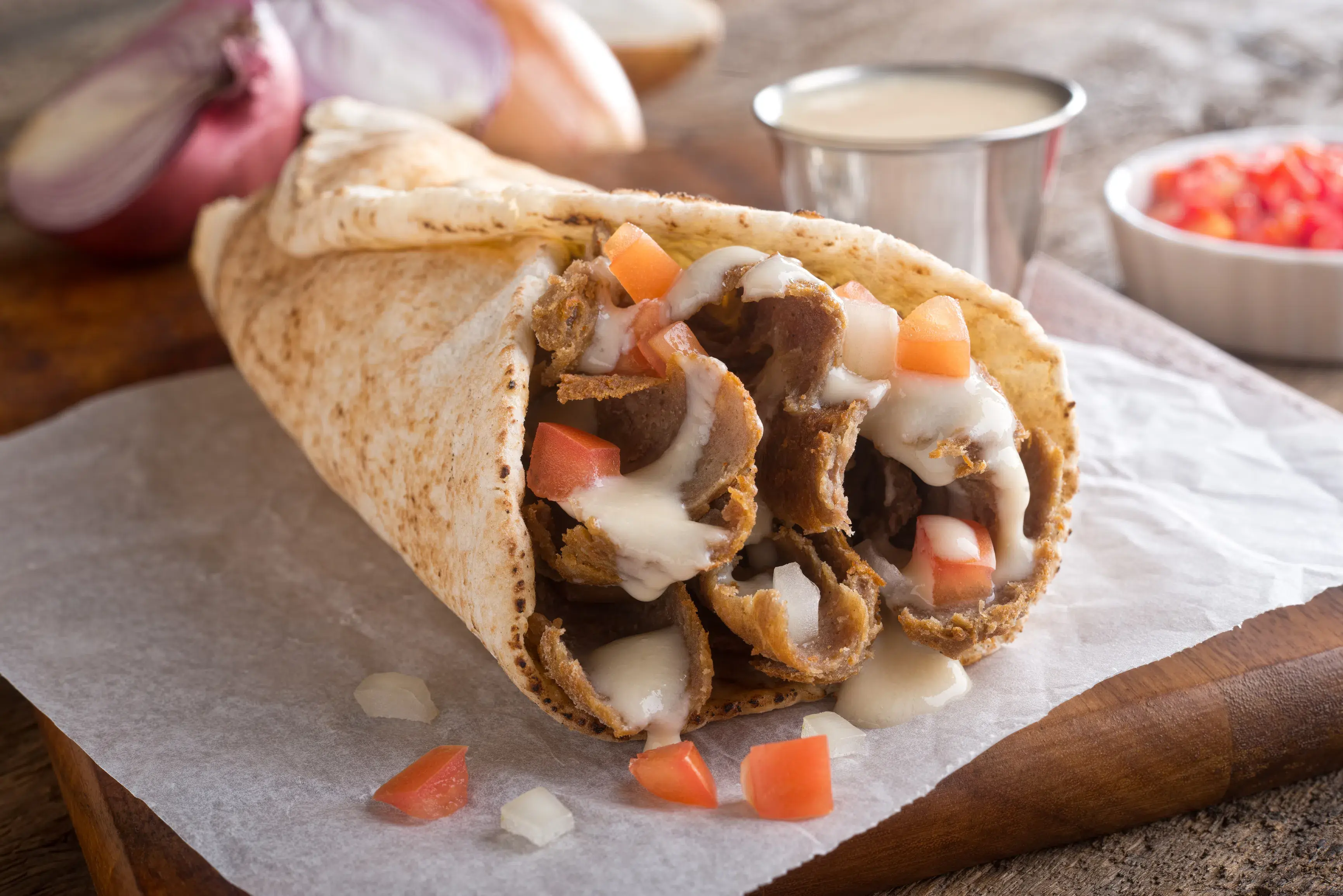 While reviews often focus on the donair, our shawarma is also noted for its high quality, with fresh meat and vegetables. Tender marinated chicken grilled to perfection with Middle Eastern spices, served in fresh pita bread with tomatoes, onions, Banana peppers, pickles de garlic sauce.